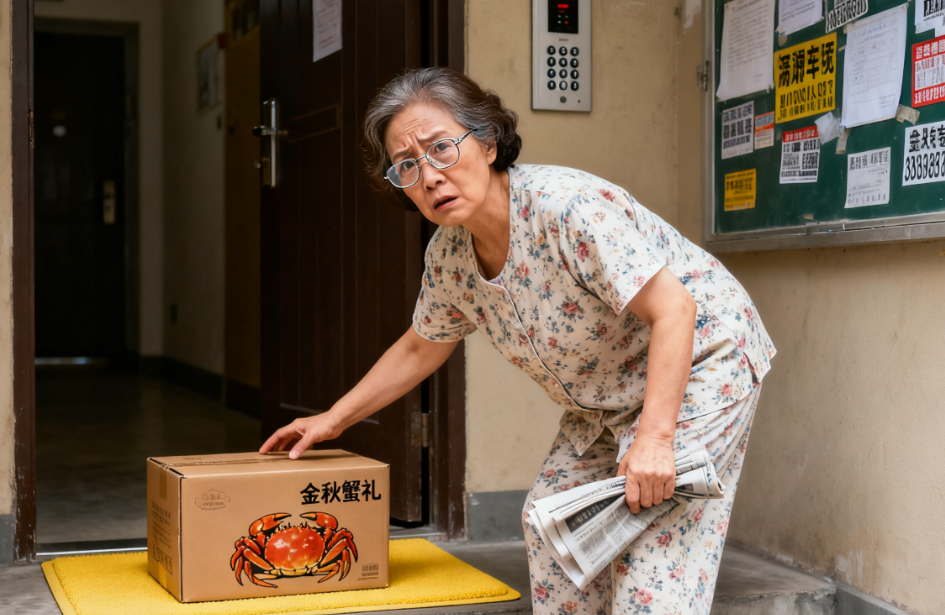 10 月 22 日那天,钱阿姨像往常一样下楼取报纸,刚走到单元门口,就看见门垫上放着个印着 “金秋蟹礼” 的快递盒。盒子不大,收件人写的是 “钱女士”,地址是她的小区门牌号,可发件人一栏只写着 “蟹农合作社”。