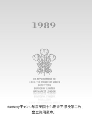 11. 1989年,Burberry于1989年获英国维尔斯亲王颁授第二枚皇室御用徽章。