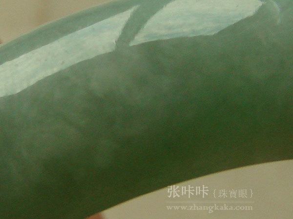 即便是肉眼看很通透,很细腻,放大依然可以看到结构,翠性的闪光: