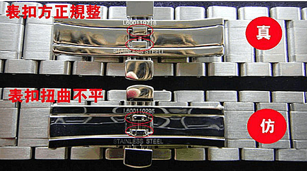 真品的表扣方正而且很规整,伪造品就不用说了,小一圈不说还扭曲不平,你们有观察到吗?